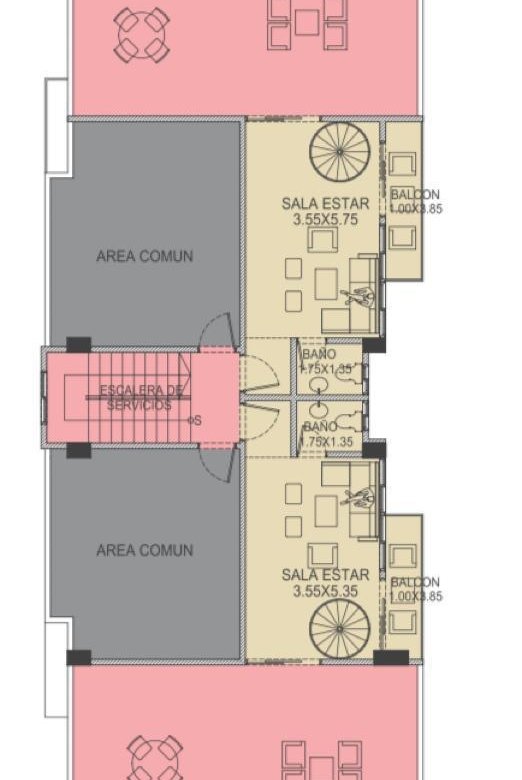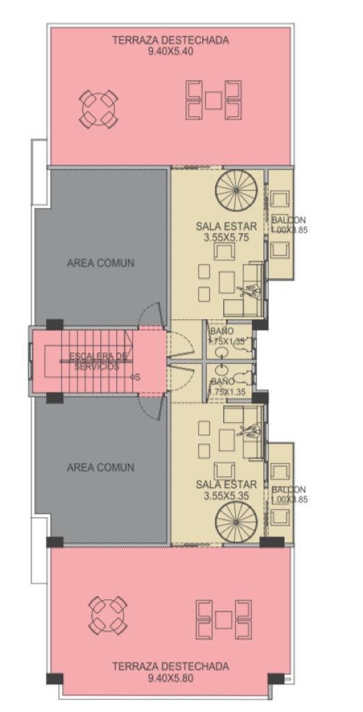 - Penthouse con terraza techada y destechada, sala de estar y baño de visitas.