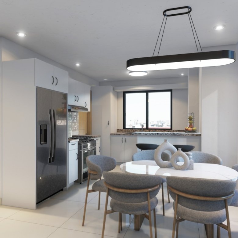 • Cocina con desayunador y despensa, con tope en cuarzo